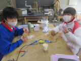 3組は技術。ラジオ製作で、はんだづけの作業でした。