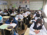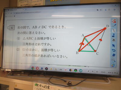 今日は2年生前半(1、2、3組)の授業を参観しました。1組は数学で図形。
