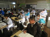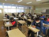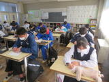 5組は英語。Lesson7の単元テストに取り組んでいました。
