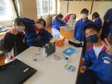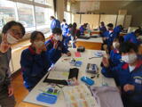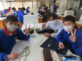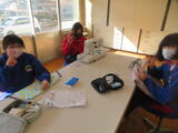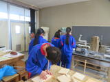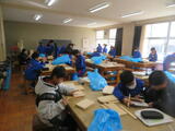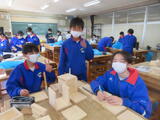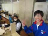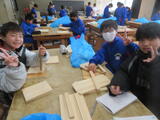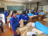 4組は技術。木材加工で、本棚やラックなど自分で選んだものの作製していました。