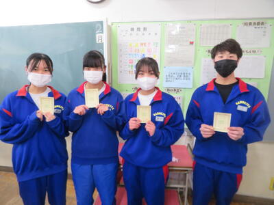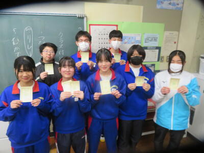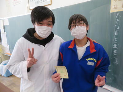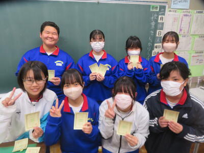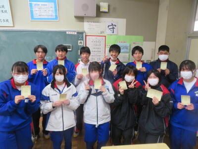 インフルエンザに罹患している生徒が増え続けています。今日も閉鎖となる学級が出ました。うがい、石けんでの手洗い、マスク、換気など、感染対策を確実に行いましょう。明日は建国記念の日でお休みです。安全、安心そして明るく過ごしてください。