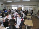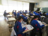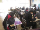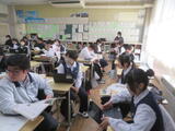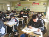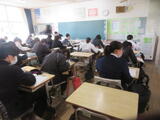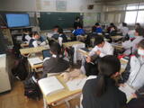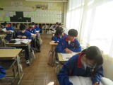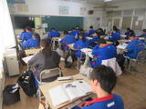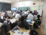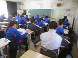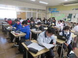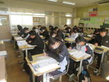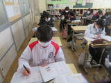 3組は国語。「いつものように新聞が届いた 今野俊宏」のところで、情報メディアを題材にした本文を読んで、自分の意見を考えていました。