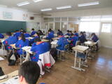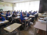 今日は、3年生前半(1、2、3組)の授業を参観しました。1組は社会。これまでの学習をワークで振り返っていました。