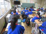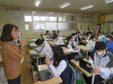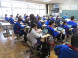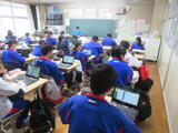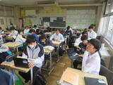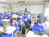 今日は2年生前半(1、2、3組)の授業を参観しました。1組は国語。CBT(Computer Based Testing =端末を使って行われるテスト)で行われる「とちまるチェック」の動作確認が行われていました。