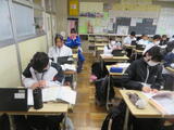 2組は英語。修学旅行で、佐野市の紹介をするための準備の学習をしていました。