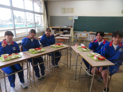 3年生と校長との会食35日目。将来の夢や北中での思い出などを聞かせてもらいました。また後輩へアドバイスとして、「1、2年生のうちに、苦手教科の克服をしておくといいと思います。勉強をする。復習して1年の内容を思い出すこと。友達とたくさん遊んで、楽しい思い出をいっぱいつくってほしい。勉強はこつこつやった方がいい。勉強をしてください」などがありました。ぜひ、参考にしてください。放送委員さんも、いつもごくろうさま。