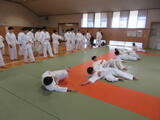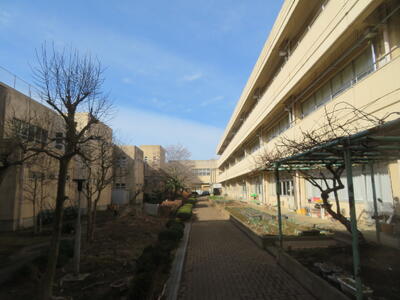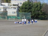 今日は1年生後半(3、4組)の授業を参観しました。女子は校庭で、長距離走。