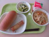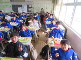 今日の給食風景は1年4組。放送委員さんも、いつもごくろうさま。