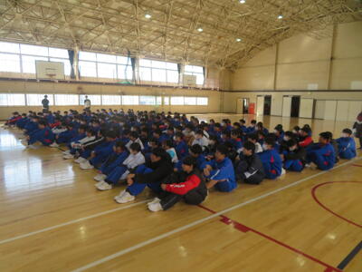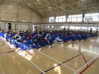 1時間目には、卒業式の会場などの片付けが行われました。その後、3学年主任からお礼と感謝の言葉がありました。それぞれが、1年後、2年後に、いい卒業式を迎えられるように、生活の基本に「人として」という考え方が大切である、などが話されました。在校生の皆さん、準備や片付け、ありがとうございました。