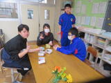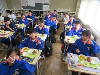 4時間目には調理室で、みかもの生徒が揚げパンを作っていました。校長先生もいただきました。おいしかったです。ごちそうさまでした。
