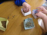 今日はみかも学級の授業を参観しました。1組は、植物から種を取る作業をしていました。