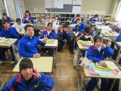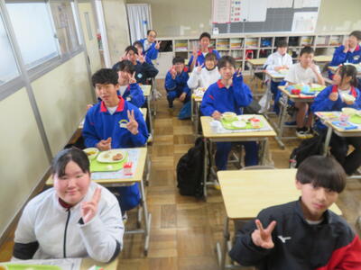 今日の給食風景は、2年5組。放送委員さんも、いつもごくろうさま。