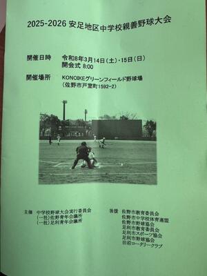 3月14日(土)、KONOIKEグリーンフィールド野球場において、2025−2026安足地区中学校親善野球大会が行われ、本校野球部が出場しました。一回戦、先制しましたが、惜しくも敗れました。生徒の皆さん、お疲れ様でした。保護者の皆様、応援や送迎など、お世話になりました。大会関係者の皆様、お世話になりました。