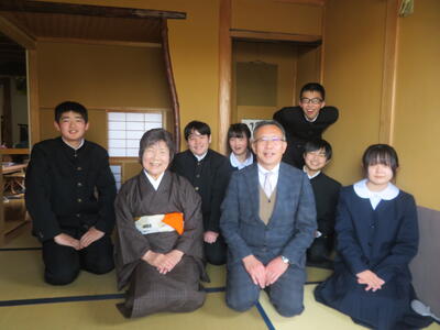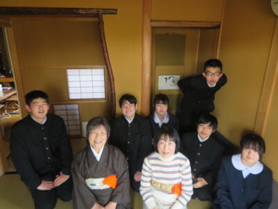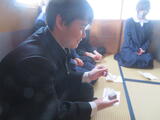 1組は茶道体験をしてきました。学校の近くにお住まいの、竹川美津子先生(市内で中学校の先生として御活躍なさり、校長先生で御退職なさった方です)のお宅に伺い、お菓子をいただいたり、お茶を点てたりして、お茶を三服いただいてきました。日本の伝統文化に触れる、とても貴重な体験をさせていただきました。竹川先生、ありがとうございました。