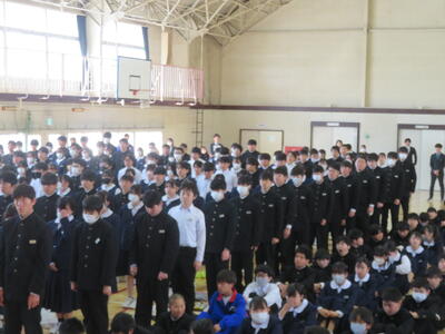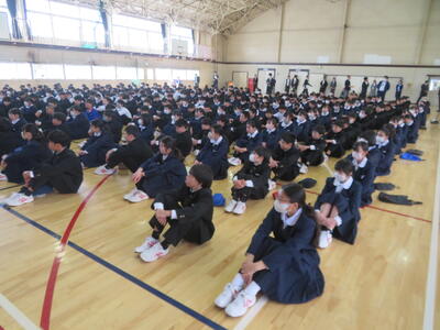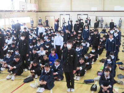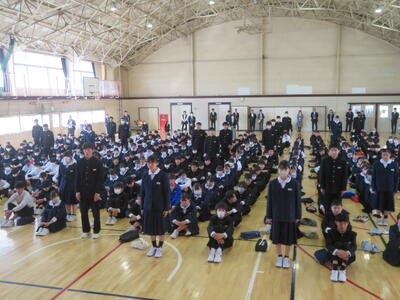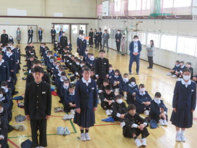 校長からは、1年前の始業式の時の話、入学式の時の話を話題に、今、どんな状況か、振り返ってもらいました。また、この春休みは「これまでの1年を振り返り、これからの1年を考える時間に」そして「信頼される先輩・上級生になるための準備」をしてください、などの式辞がありました。